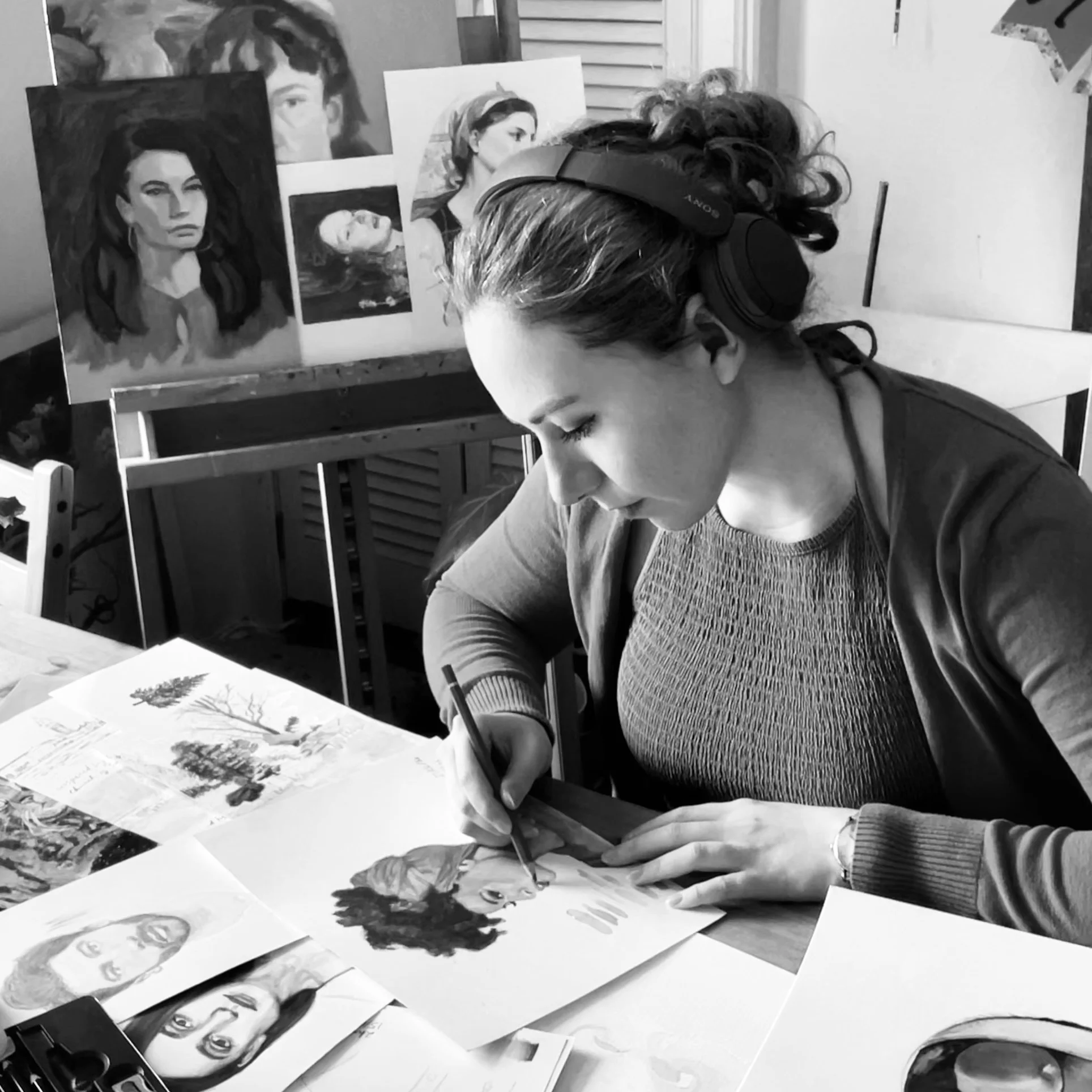 I mainly paint portraits with oil paint and in a figurative style. You can see some of my own pieces below and on Instagram (@laurenr4444). I also enjoy drawing and painting animals, and sketching places I travel to.